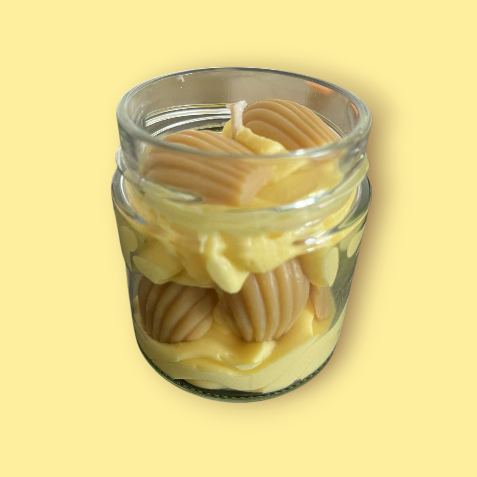 Laissez-vous transporter en enfance avec notre bougie artisanale Madeleine d'antan .