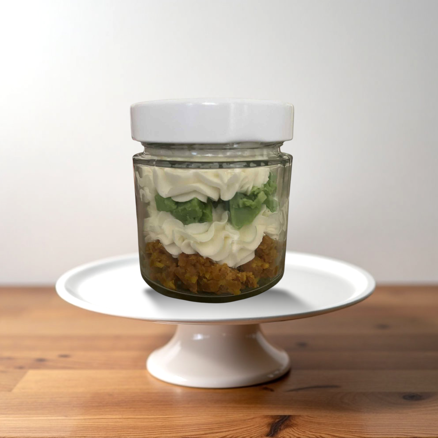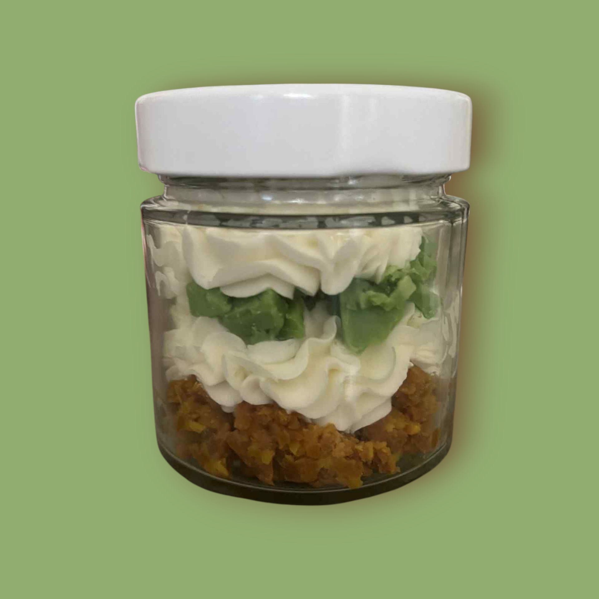 Oubliez les calories et plongez dans une expérience parfumée en couches : le voyage commence par un fond croustillant de crumble biscuité, rapidement suivi d'une couche de chantilly onctueuse.